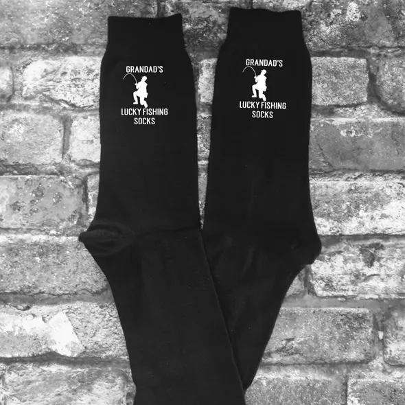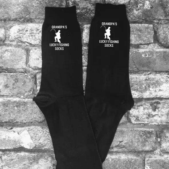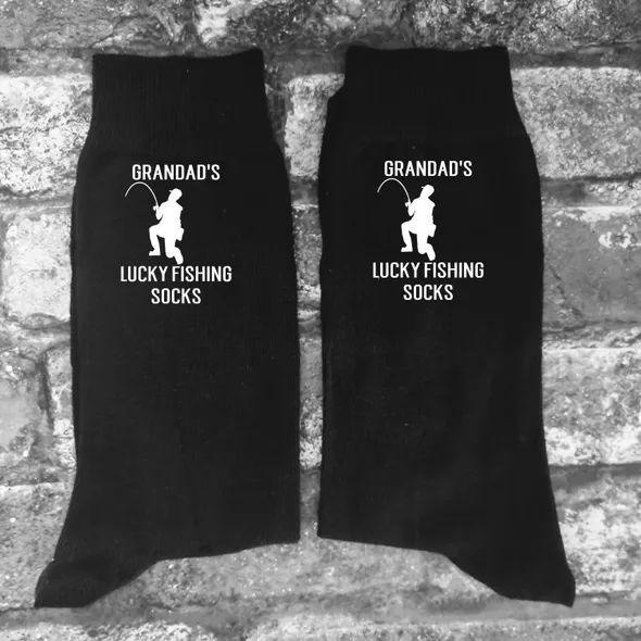 Novelty Fishing Socks.Great humorous gift, ideal for Father's Day or Christmas. These socks are available with Grandad, Grandpa or Gramps on. They are a great budget and useful gift, the writing is printed in vinyl on the sides of the socks, it will be printed so that it is visible on the outside of the socks as you are wearing them. PLEASE NOTE: THESE ARE NOT THICK SPORTS SOCKS, THEY ARE THE THINNER DRESS SOCKS.Machine washableAll of my items are made using high quality heat transfer vinyl with an industrial heat press. Washing:Please wash at 40° or lower with similar colours. Ironing:Please iron inside out. Do not iron design.Colours may appear different due to monitors/screen.Please ensure you have purchased the correct size and style before ordering. All our items are made to order. <<<<<< Please remember we are UK based & as such may be in a different time zone to you, so please be aware that there may be a delay in response to conversations. >>>>>>****************************************************************************************************************************************************************<<<<<< Shipping Information >>>>>>We are UK based and ship most items by Royal MailUK: 2nd Class Royal Mail – following dispatch expect delivery within 2-5 days.UK UPGRADE TO 1st Class – following dispatch expect delivery within 1-2 daysEUROPE: Royal Mail International Standard - following dispatch expect delivery within 5-14 days. THIS SERVICE IS NOT TRACKED. EUROPEAN UPGRADE: Royal Mail International Tracked or Tracked and Signed - following dispatch expect delivery within 5-14 days.RUSSIA: Tracked or Tracked & Signed only.USA, AUSTRALIA & NEW ZEALAND: Royal Mail International Standard: IF YOU CHOOSE THIS OPTION IT IS NOT TRACKED – following dispatch expect delivery in 2-5 weeks (this may be longer during holiday periods).USA, AUSTRALIA & NEW ZEALAND UPGRADE: Royal Mail International Tracked - following dispatch expect delivery within 2-5 weeks.CANADA: Royal Mail International Tracked - following dispatch expect delivery within 2-5 weeks (this may be longer during holiday periods).Please note that we cannot be held responsible for any delays at Customs or otherwise due to Strikes, Weather Conditions or other unforeseen circumstances outside of our control.PLEASE NOTE that in all cases our Standard Shop Processing Times still apply *** If your order is Time Sensitive please let us know as soon as possible, ideally before making a purchase so that we can advise you accordingly if your need by date is achievable. ********************************************************************************************************************************************************************<<<<<< Delivery Information >>>>>>Any Items ordered by you will be delivered to the address that you supplied to Etsy. If any of the details in your delivery address that you gave us are incorrect, we are not liable for any items not received.You may request an address for delivery that is different to your billing address, if, for example, you would like us to deliver the items directly to a friend, a relative, or to your place of work.Delivery will be made as soon as possible, all delivery and dispatch timescales quoted do not include weekends or bank holidays.Some postal addresses in Northern Ireland, some offshore islands and some remote areas of Great Britain may not be covered by our normal delivery services and so we may have to contact you to advise you of extra postal charges.