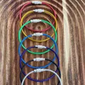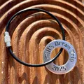 25mm aluminium washer metal stamped with the design on one side, hung on sturdy plastic covered stainless steel wire with secure twist connector. The wire is 15cm long making a loop approx. 5cm diameter, which holds its circular shape when in use.