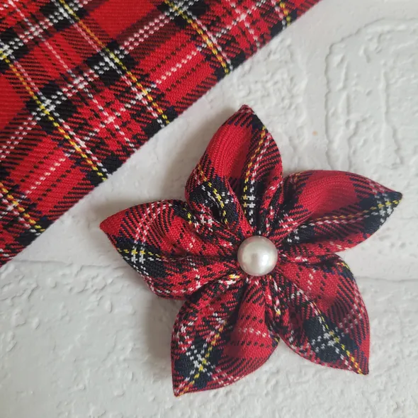 Red Royal Stewart Tartan 3" Handmade Flower Accessory [SCARLET]