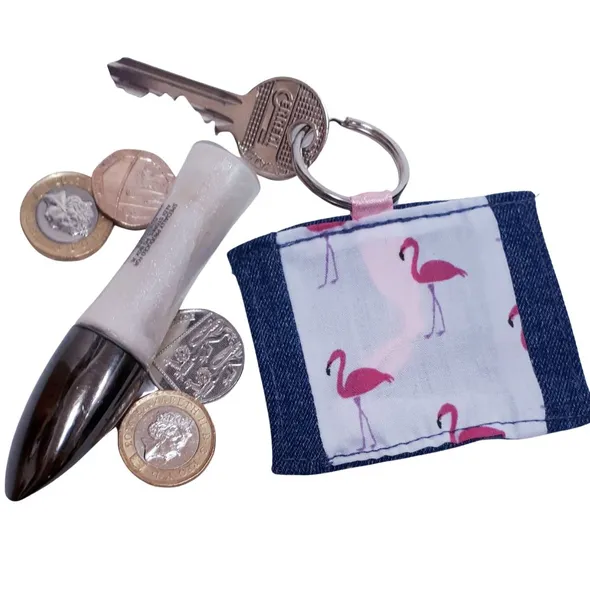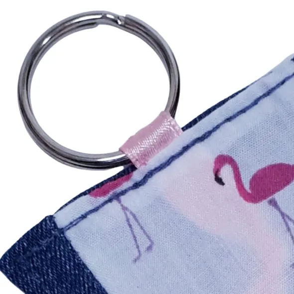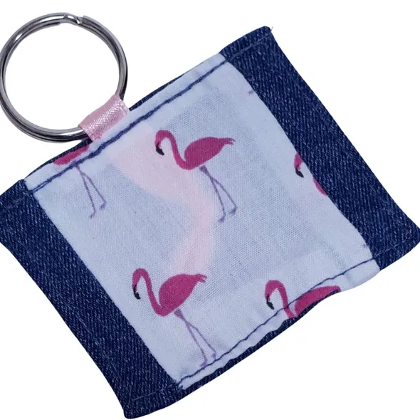 Upcycled Denim and Flamingo Keyring and BookmarkBOOKMARKmade using recycled denim and embellished with a panel of flamingo material Each bookmark has a ribbon 'tail' made from coloured ribbon. This enables user to locate their bookmark easily within the pages of their chosen bookSize: 5cm x 12cm (plus ribbon tail) approximatelyKEYRINGThis keyring is made using recycled denim and embellished with a panel of flamingo materialEach keyring has a ribbon loop attaching the keyring to allow you to attach to your keys.Being made from denim, this keyring is soft and doesn’t increase bulk or weight in your pocket or handbag Size: approx. 5cm x 5cm (plus ring) approximatelyPLEASE NOTE: We do our best to ensure that the item you receive is comparable to the item pictured - but due to the nature of using recycled denim and materials, each item is slightly different and has individual character