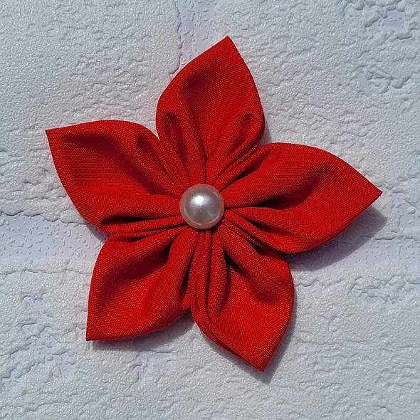 A gorgeous, handmade, red flower accessory. It has individually hand sewn petals, it is then embellished with a faux pearl. This can be made as a hair clip or hair bobble. SIZINGThe flower is approximately 8cm (3 inches) in diameter.This can also be requested as a giant flower 13cm (5") which can be seen in other colours here: https://www.etsy.com/uk/listing/522831733Please message me to order the large flower version of this!CUSTOM REQUIREMENTSPlease contact me if you require any modifications. I will always do my best to meet any special requests.PLEASE NOTEThis product is NOT a toy.It may contain small jewels or embellishments.Each item is handmade so may vary slightly in appearance.MY SHOP & SOCIAL MEDIAPlease take a look around at other items in my store, you will find lots of other pretty items at http://www.inspiredbymyla.etsy.comDon't forget to look me up on Facebook and Instagram @InspiredByMyla - here you will find all the latest products and updates!SHIPPINGItems will come packaged and presented nicely. I take care with all my items to make buying from me an experience I hope you will repeat!If you are local to me, you are welcome to come and pick up your order and I will refund shipping charges.