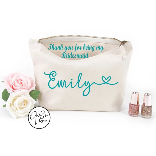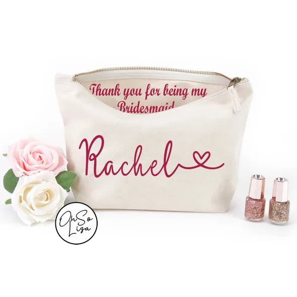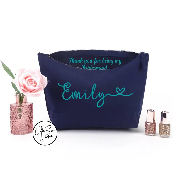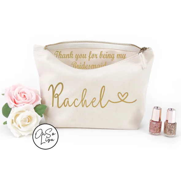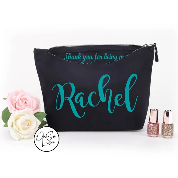 Personalised Make Up Cosmetic Bag with a Name on front and a hidden message inside the Bag. This message can be thanking those who played a special role in your Big Day or simply a message to a Friend or someone dear with a personal message to give your gift that extra touch.
